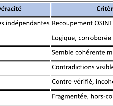 La méthode de cotation OSINT proposée ici vise à répondre à un besoin concret : permettre aux analystes de qualifier rapidement et rigoureusement l’information collectée en source ouverte, tout en conservant une approche adaptable, simple à utiliser sur le terrain, et pertinente dans des contextes variés — crise, veille stratégique, investigation numérique, cyberdéfense ou OSINT judiciaire.
